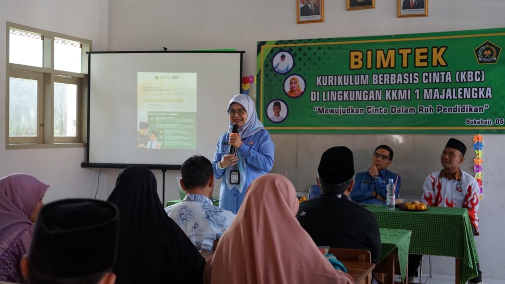 Sukahaji (KEMENAG) – Kepala Seksi Pendidikan Madrasah (Kasi Penmad) Kantor Kementerian Agama Kabupaten Majalengka, Dr. Hj. Euis Damayanti, M.P.Kim., secara resmi membuka sekaligus memberikan materi pada kegiatan Bimbingan Teknis (Bimtek) Kurikulum Berbasis Cinta (KBC). Kegiatan yang diinisiasi oleh Kelompok Kerja Madrasah Ibtidaiyah (KKMI) 1 ini diselenggarakan di MIS Sukahaji pada Kamis (5/2/2026).