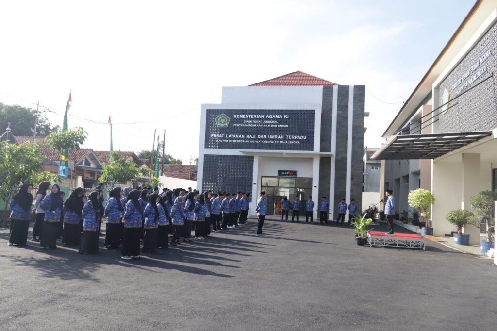 Hadir dalam kesempatan tersebut, Kepala Kantor Kementerian Haji dan Umrah, H. Abu Mansyur, S.Ag., M.Pd.I., jajaran Kepala Seksi, Penyelenggara Zakat Wakaf, serta Kepala KUA Kecamatan Majalengka. Apel ini diikuti dengan khidmat oleh seluruh pegawai di lingkungan Kantor Kemenag Majalengka dan pegawai KUA Kecamatan Majalengka.