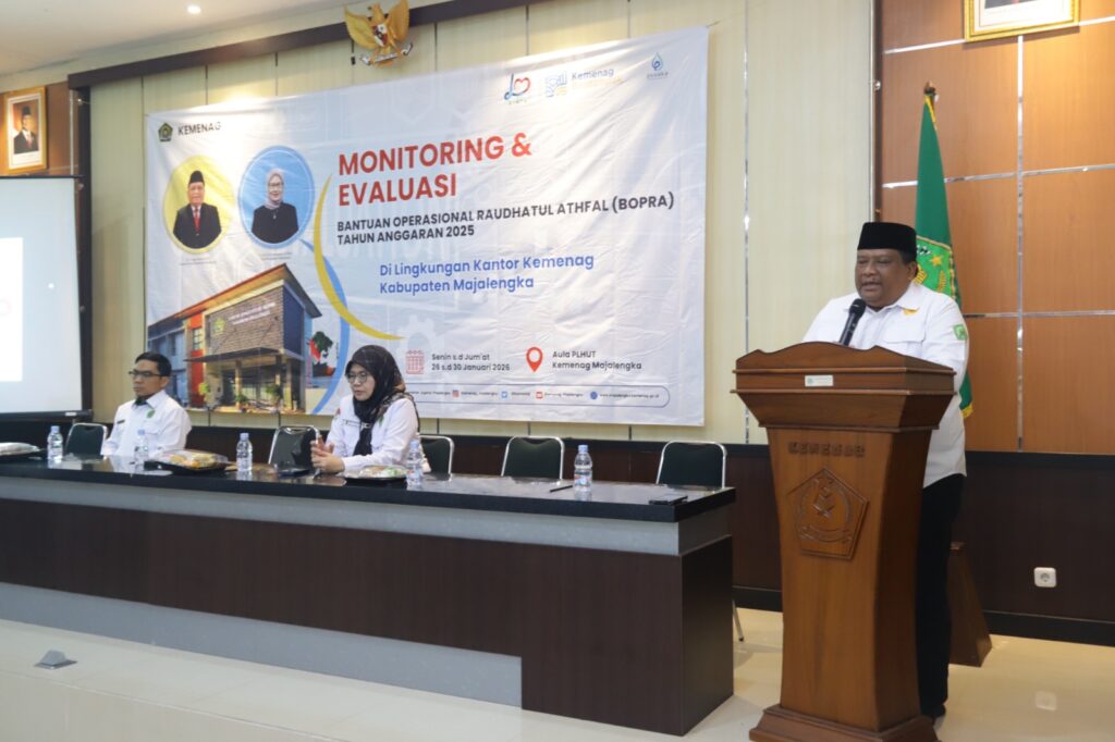 Majalengka (KEMENAG) – Kantor Kementerian Agama Kabupaten Majalengka resmi memulai kegiatan Monitoring dan Evaluasi (Monev) Bantuan Operasional Raudhatul Athfal (BOPRA) Tahun Anggaran 2025. Kegiatan yang dipusatkan di Aula Kemenag Majalengka ini dijadwalkan berlangsung selama lima hari kerja, mulai Senin, 26 Januari hingga Jumat, 30 Januari 2026.