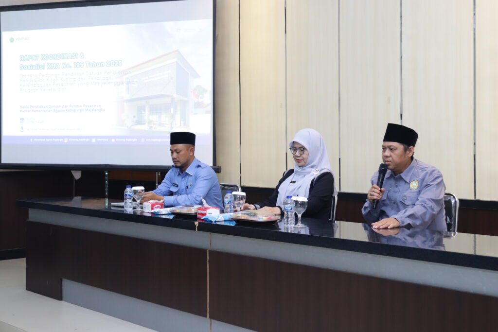 Majalengka (KEMENAG) – Kantor Kementerian Agama (Kemenag) Kabupaten Majalengka menggelar Rapat Koordinasi Pondok Pesantren sekaligus Sosialisasi KMA Nomor 195 Tahun 2025 tentang Pedoman Pendirian Satuan Pendidikan Kajian Kitab Kuning. Kegiatan yang berlangsung di Aula Kantor Kemenag Majalengka pada Kamis (23/4/2026) ini dihadiri oleh 50 pimpinan dan operator pondok pesantren se-Kabupaten Majalengka.