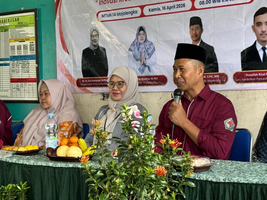 Majalengka (KEMENAG) – Musyawarah Guru Mata Pelajaran (MGMP) Pendidikan Pancasila jenjang Madrasah Tsanawiyah (MTs) Kabupaten Majalengka menggelar kegiatan Diseminasi Workshop Media Pembelajaran dan Musyawarah Persiapan Asesmen Madrasah. Kegiatan yang bertema “Inovasi Kreatif menuju Pembelajaran Bermakna” ini diikuti oleh puluhan guru dari berbagai wilayah di Kabupaten Majalengka yang dipusatkan di Aula MTsN 14 Majalengka pada Kamis (16/4/2026).