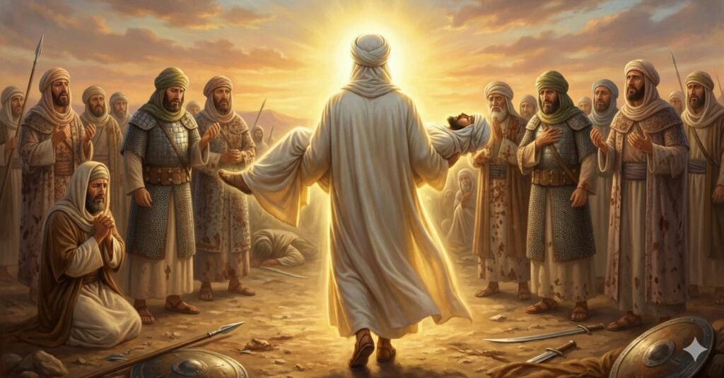 Nabi mencarinya sendiri di antara tumpukan jenazah. Dan akhirnya, beliau menemukannya.