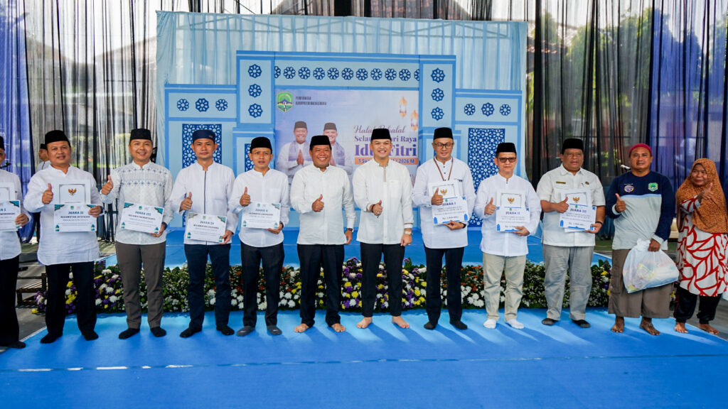 Majalengka (KEMENAG) – Kepala Kantor Kementerian Agama Kabupaten Majalengka, Dr. H. Agus Sutisna, S.Ag., M.Pd., menghadiri kegiatan Halalbihalal Idulfitri 1447 H yang diselenggarakan oleh Pemerintah Daerah Kabupaten Majalengka pada Kamis (26/3/2026). Bertempat di Lapangan Tenis Setda Kabupaten Majalengka, kehadiran Kepala Kantor didampingi oleh Kasubag TU Dr. H. Heru Hoerudin, M.Ag., beserta jajaran Kepala Seksi dan Penyelenggara Zakat Wakaf.