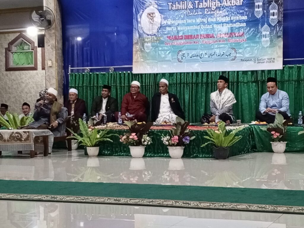 Rajagaluh (KEMENAG) – Suasana khidmat dan penuh kekeluargaan menyelimuti Masjid Besar Nurul Amaliyyah, Desa Rajagaluh Lor, pada Sabtu malam (31/1/2026). Ratusan jemaah berkumpul untuk memperingati peristiwa agung Isra Mi’raj Nabi Muhammad SAW sekaligus menjaga tradisi lokal “Rewahan” dalam menyambut datangnya bulan suci Ramadan.