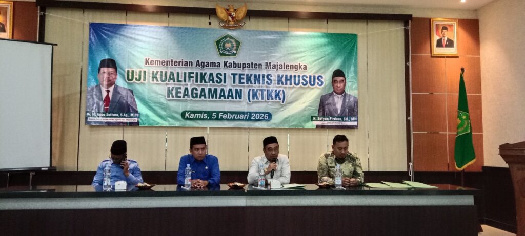 Majalengka (KEMENAG) – Dalam upaya memperkuat tata kelola birokrasi dan meningkatkan mutu layanan publik di bidang keagamaan, Kantor Kementerian Agama (Kemenag) Kabupaten Majalengka menyelenggarakan Uji Kualifikasi Teknis Khusus Keagamaan (KTKK). Kegiatan strategis ini berlangsung di Aula Kantor Kemenag Kabupaten Majalengka pada Kamis (05/02/2026).